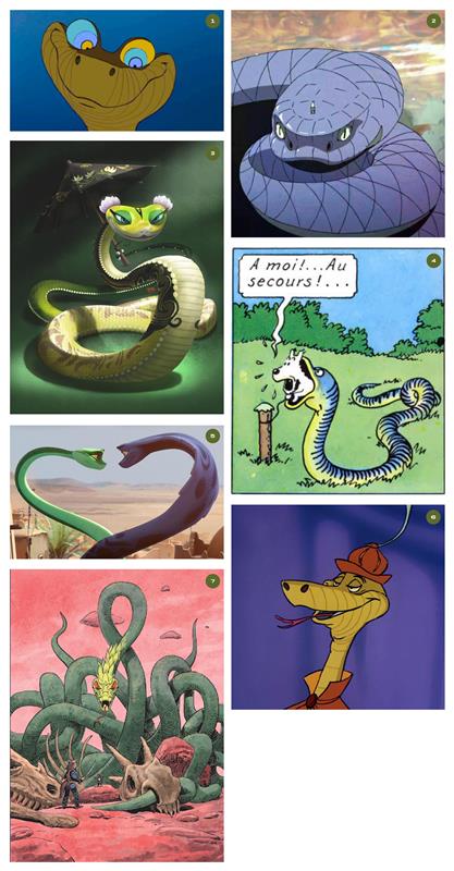 Le serpent gourmand dans Tintin au Congo, Hergé, 1931