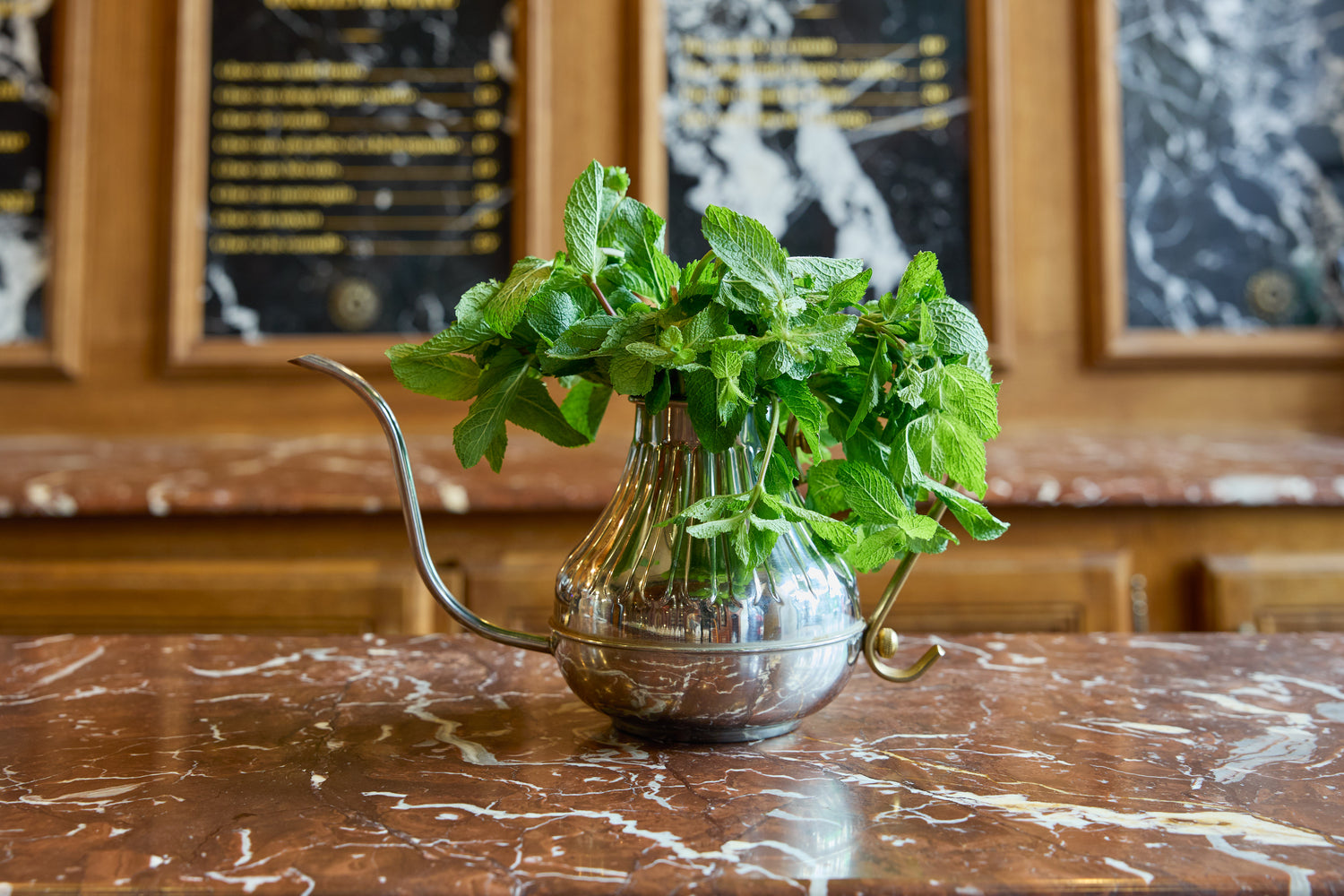 Hacher 50 grammes de feuilles de menthe ; les recueillir dans un bol et ajouter 2 cuillerées à soupe de sucre en poudre ou de cassonade blanche, 5 à 6 cuillerées de vinaigre, une prise de sel. Bien mélanger le tout. Admirable en accompagnement de l’agneau, qu’il soit chaud ou froid.*recettes issues de « Ma Cuisine », livre de recettes d’Auguste Escoffier (1846-1935), illustre personnage sacré « roi des cuisiniers, cuisiniers des rois » en son temps.