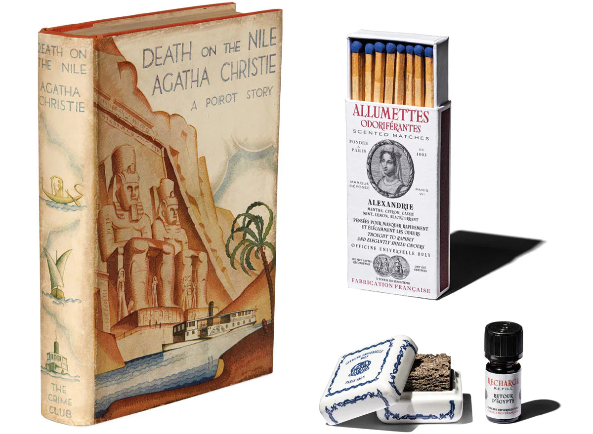 Comme un jeu et un faisceau d’indices, les soins de l’Officine vont servir de fil rouge dans ce dédale d’enquêtes formidables, en hommage à cet univers noir, si noir, où un thé servi dans la bibliothèque évoque le Miel d’Angleterre et autres pharmacopées, où le détective Hercule Poirot prend soin, avec méthode et maniaquerie, de sa superbe moustache, où l’Orient-Express devient le théâtre d’une tragédie avec des allumettes et des initiales faisant office de preuves, où des voyages en Égypte et des fouilles archéologiques en Orient mettent à jour la vérité et, enfin, où les roses ne font pas qu’enivrer de leur parfum. Voici le moment de faire marcher ses petites cellules grises comme Poirot pour pister la cosmétique dans l’œuvre de Dame Agatha.