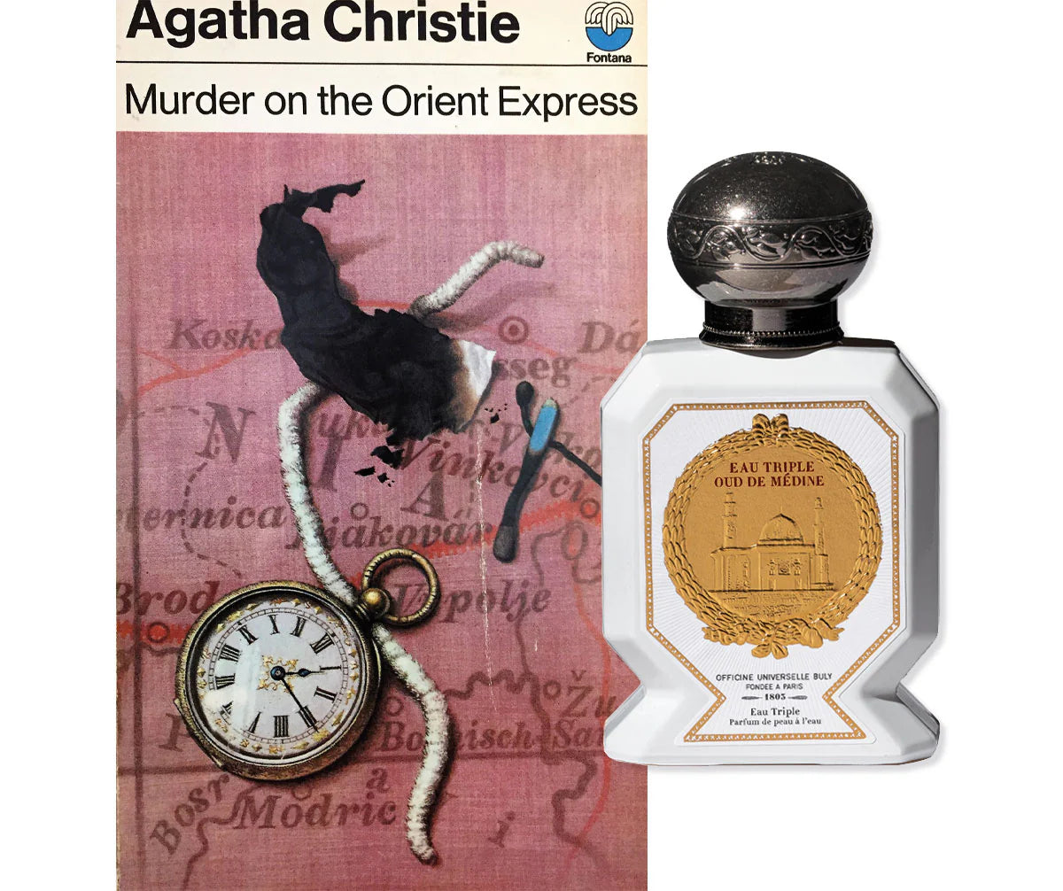 Dans son célèbre roman écrit en 1934, un meurtre est commis de nuit dans ce train de luxe en partance d’Istanbul, avec, entre autres, à son bord Hercule Poirot, une princesse russe, une missionnaire suédoise, un comte hongrois, un colonel anglais, etc. L’atmosphère de ce train mythique roulant à pleine vitesse en hiver entre l’Orient et l’Europe évoque la senteur mystérieuse de l’Eau Triple de l’Officine Oud de Medine, aux accords de bois d’oud, de rose, de safran et d’ambre.
