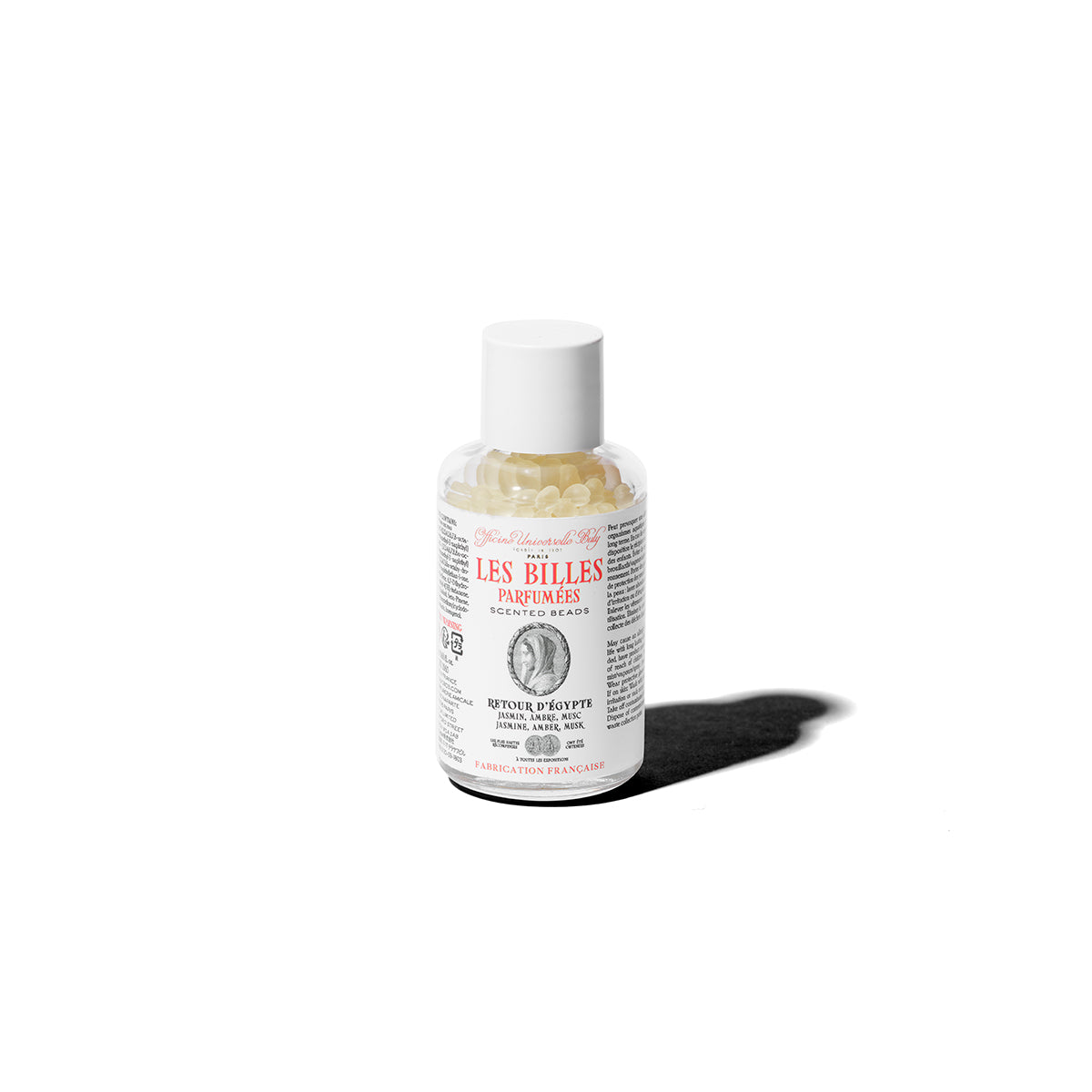 Bottle of Perfumed Beads specially designed to refill the Scented Metal Box, prolonging the enjoyment of this suspended home fragrance. Available in four room scents.