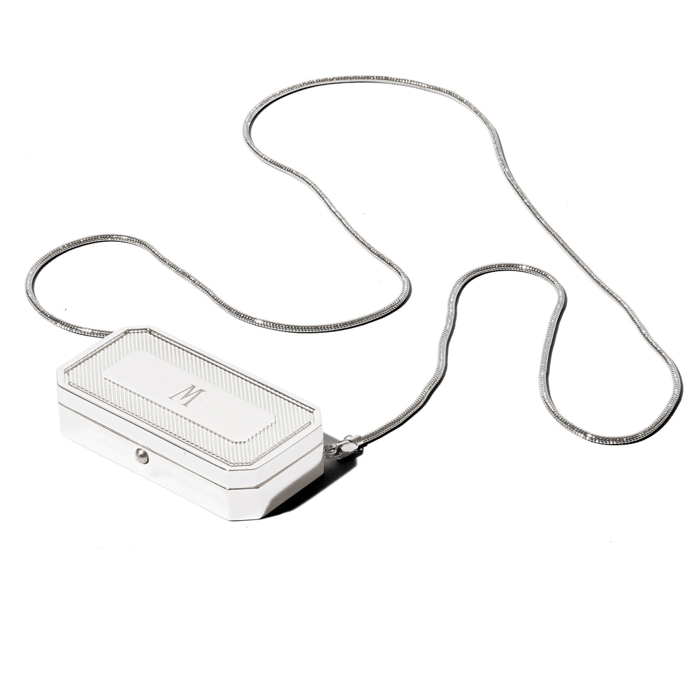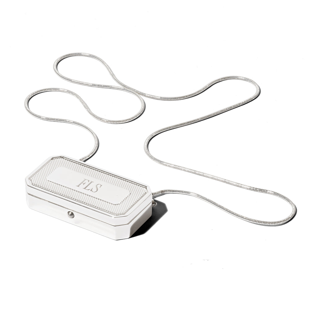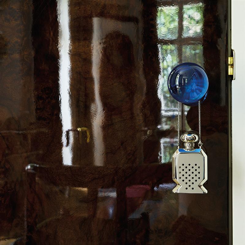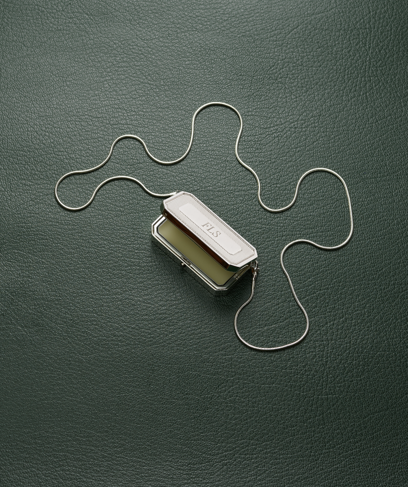 Its design is a tribute to the illustrious vial of the Eau Triple – a water-based skin perfume created by the Officine. Equipped with a fine link chain, the Scented Metal Box hangs with ease wherever the desire for fragrance arises... The only limit is your imagination.