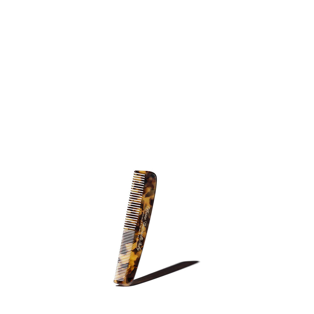 This comb is handcrafted in Switzerland by one of the last manufacturers in Europe. Cut from a block of very high quality acetate, it is shaped, sculpted and then polished. The teeth and notches are especially arranged so as not to injure the hair. A plant fibre, the acetate reveals a unique pattern specific to each comb.