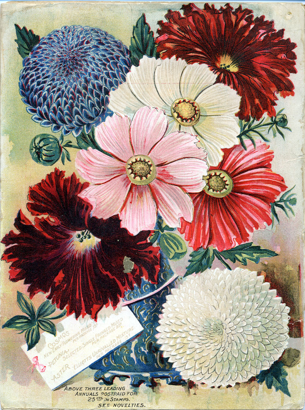 Dans un registre tout à fait différent, en 1667, l’horticulteur et jardinier anglais William Lucas publie « A Catalogue of Seeds, Plants » où il répertorie pour ses clients les prix des plantes en onze sections. Les catalogues de graines (fleurs, plantes, fruits, légumes, etc.) ont été un des premiers grands succès de la vente par correspondance. À la fin du XIXe siècle, les catalogues américains, français ou anglais vont ainsi rivaliser d’ardeur et de magnificence dans la composition graphique et les illustrations en couleurs de fleurs de ces catalogues, dont les exemplaires sont aujourd’hui conservés dans toutes les grandes bibliothèques.